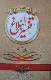 "تفسیر البلاغ" قرآن پاک کی ایک جامع اور تفصیلی تفسیر ہے جو دس جلدوں پر مشتمل ہے۔ یہ تفسیر قرآن مجید کے الفاظ، تراکیب اور اسالیب کو مدنظر رکھتے ہوئے لکھی گئی ہے، اور اس میں قرآنی آیات کی تشریح کو آسان اور عام فہم انداز میں پیش کیا گیا ہے۔ اس تفسیر میں مختلف تفسیری روایات اور اقوال کو بھی شامل کیا گیا ہے، اور اس بات کا خاص خیال رکھا گیا ہے کہ تفسیر مستند اور معتبر ہو۔ دس جلدوں پر مشتمل ہونے کی وجہ سے یہ ایک مکمل اور مفصل تفسیر ہے جو قرآن کے مختلف پہلوؤں کو سمجھنے میں مدد فراہم کرتی ہے۔ یہ ان لوگوں کے لیے ایک قیمتی خزانہ ہے جو قرآن مجید کا گہرائی سے مطالعہ کرنا چاہتے ہیں اور اس کے پیغام کو بہتر طور پر سمجھنا چاہتے ہیں۔ قیمت 250 .صفحات 200 |